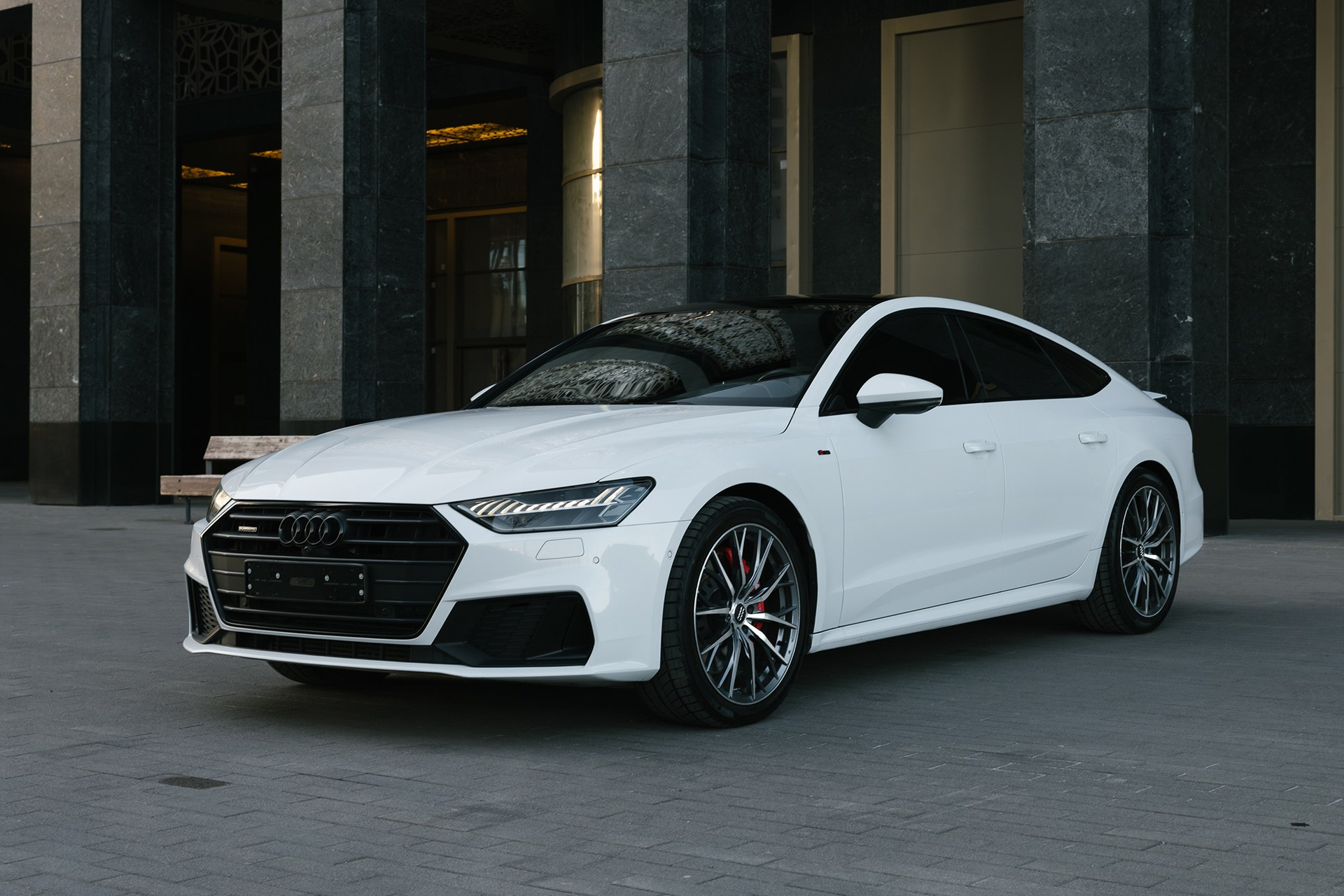 Audi A7 II (4K) 2019 года, под капотом бензиновый двигатель объёмом 3 литрa и мощностью 340 лошадиных сил. В паре с роботизированной коробкой передач он обеспечивает плавное и динамичное вождение. При этом автомобиль остаётся достаточно экономичным для повседневного использования.