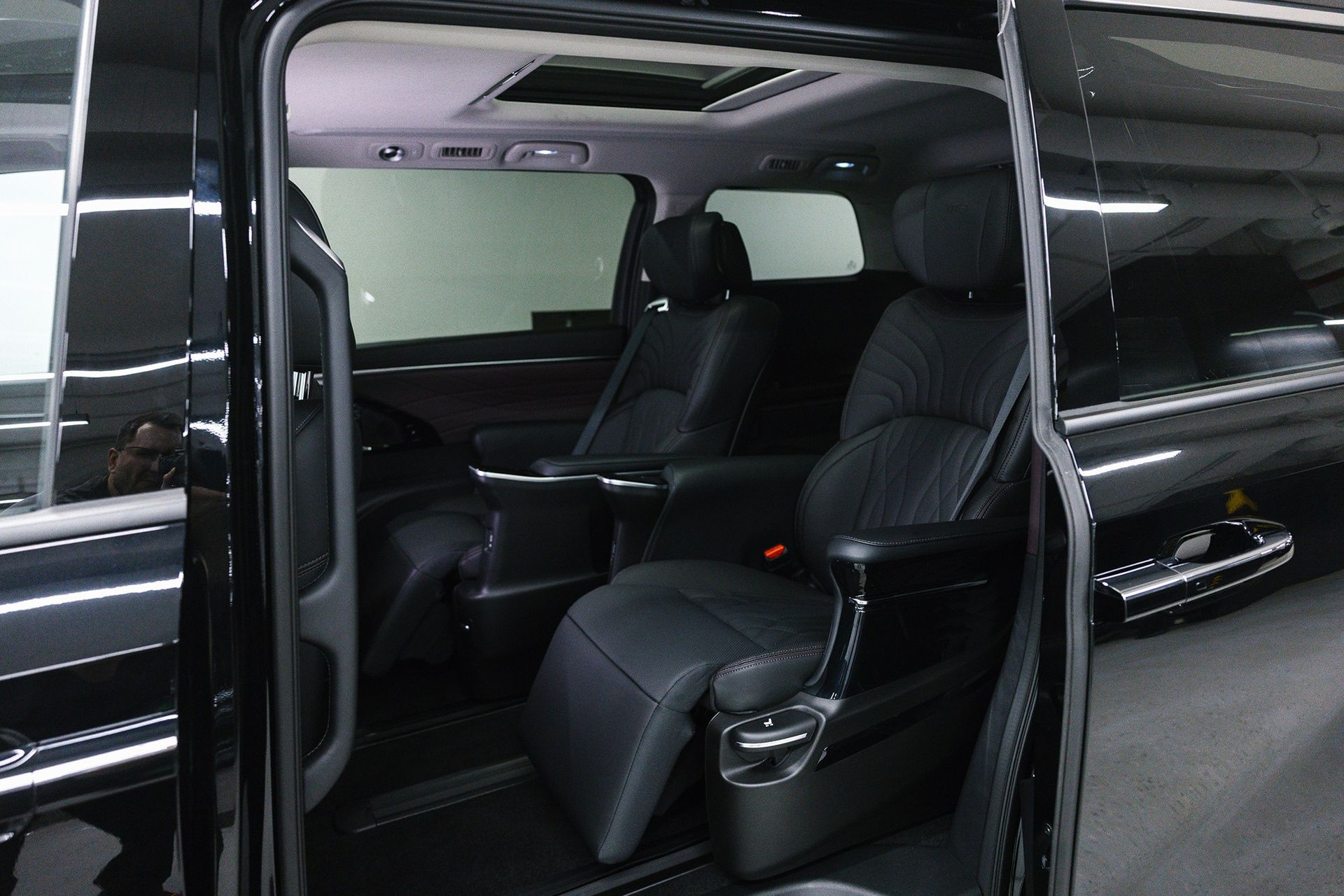 Комплектация: двойные сдвижные двери с электроприводом.светодиодная оптика, парктроники перед/зад, ассистент слепых зон, бесключевой доступ, электропривод 1 ряда сидений, электропакет, аудиосистема, атмосферная подсветка салона, мультируль с обогревом, обогрев 1 и 2 ряда сидений, 14.6-дюймовый многофункциональный сенсорный экран.12.3-дюймовый ЖК-дисплей бортового компьютера (центральная панель) вентиляция и массаж 1 ряда сидений, адаптивный круиз-контроль с функцией лимитера, проекция на лобовое стекло, цифровая приборная панель, климат-контроль на 3 зоны, мультимедиа, камера 360 в HD разрешении, кнопка старт/стоп, беспроводная зарядка для телефона, электроручник, AUTOHOLD, панорамное остекление крыши с люком, электропривод спинок заднего ряда сидений, крепления для детских кресел ISOFIX, электропривод крышки багажника, рейлинги, диски R20